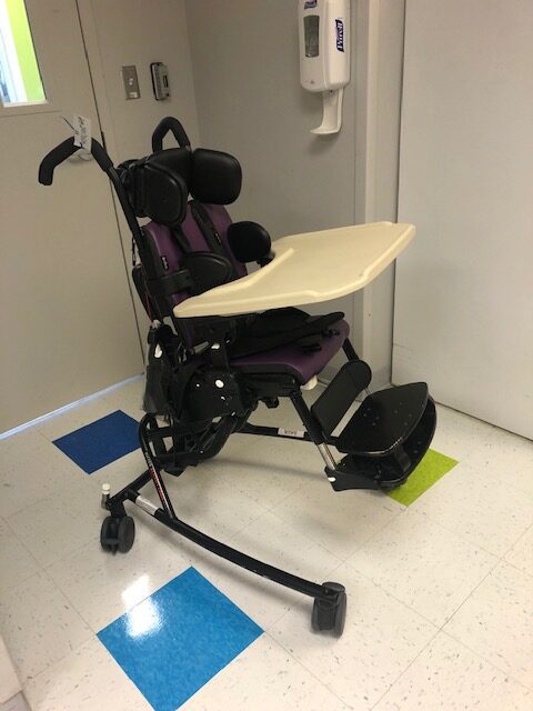 - Tilt, recline, seatbelt, headrest, lateral supports, tray, hip guides