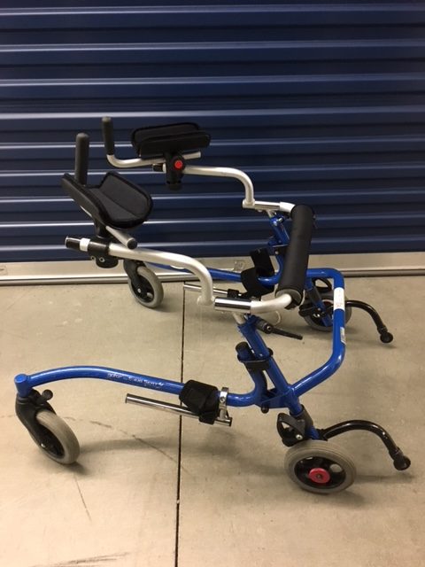 floor to elbow height of user must be 22″ to 28.” This has ankle prompts and forearm supports only, padded bar behind hips.