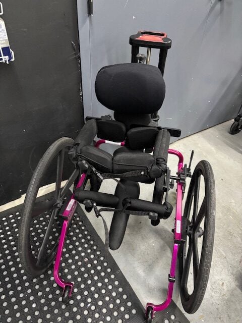 •  Hip support, lateral supports, saddle, 24″ drive wheels, headrest, front anti-tippers