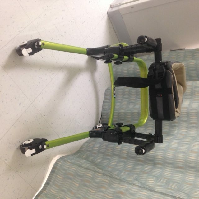 Chest prompt and sling seat (seat was in laundry at time of photo), hand holds