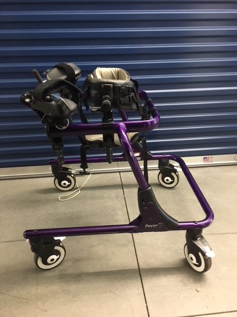 Size medium, floor to arm support adjusts 26″ – 34″, chest prompt, hip guide, forearm supports, ankle prompts