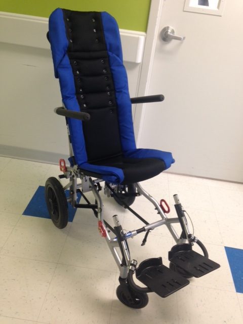 - Adjustable height armrests; seat has a static tilt of 30 degrees; transit hooks; only has a pelvic stabilizer; NO CHEST HARNESS