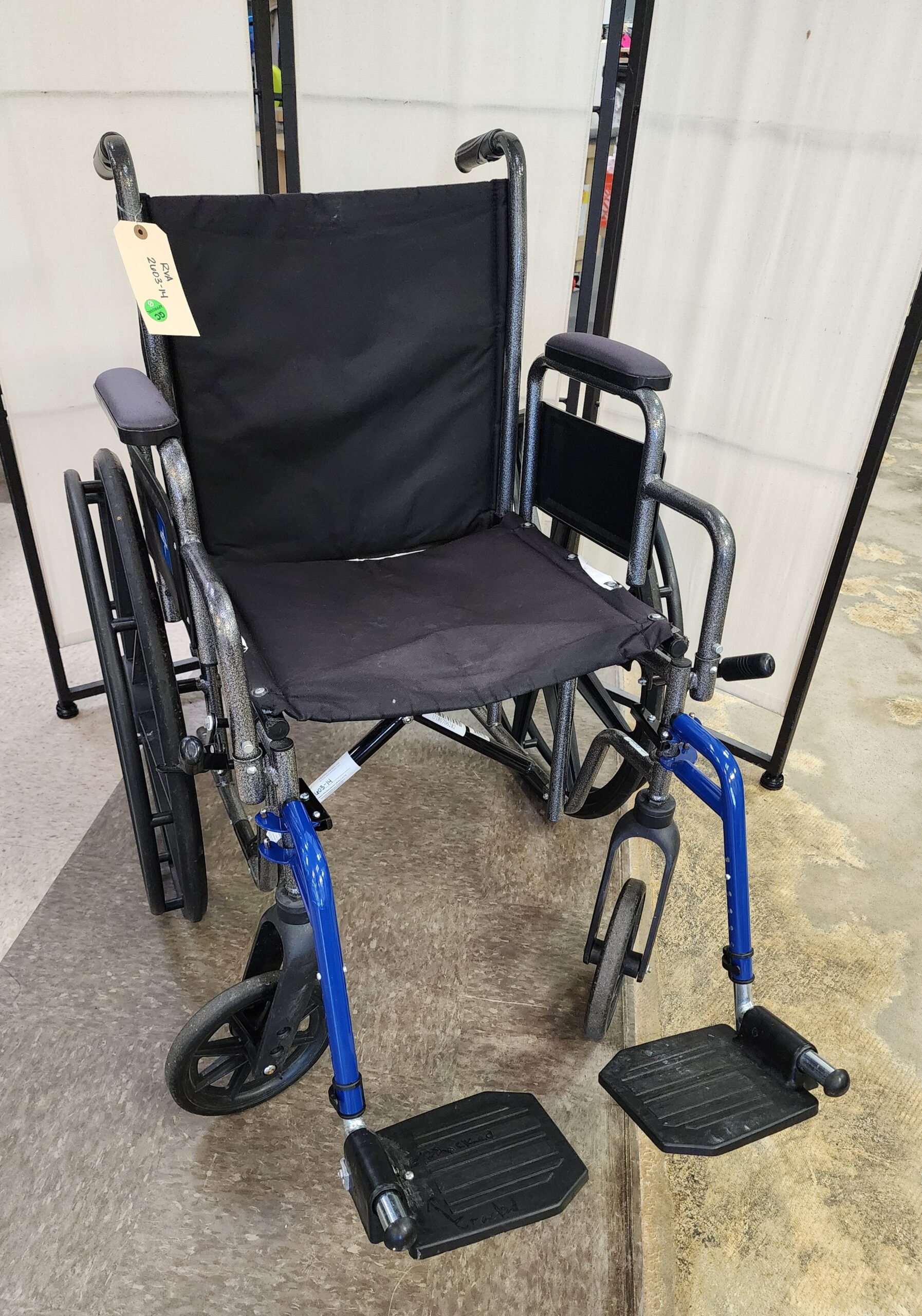 swing away leg rests, desk length arms, hand rims. In good condition.