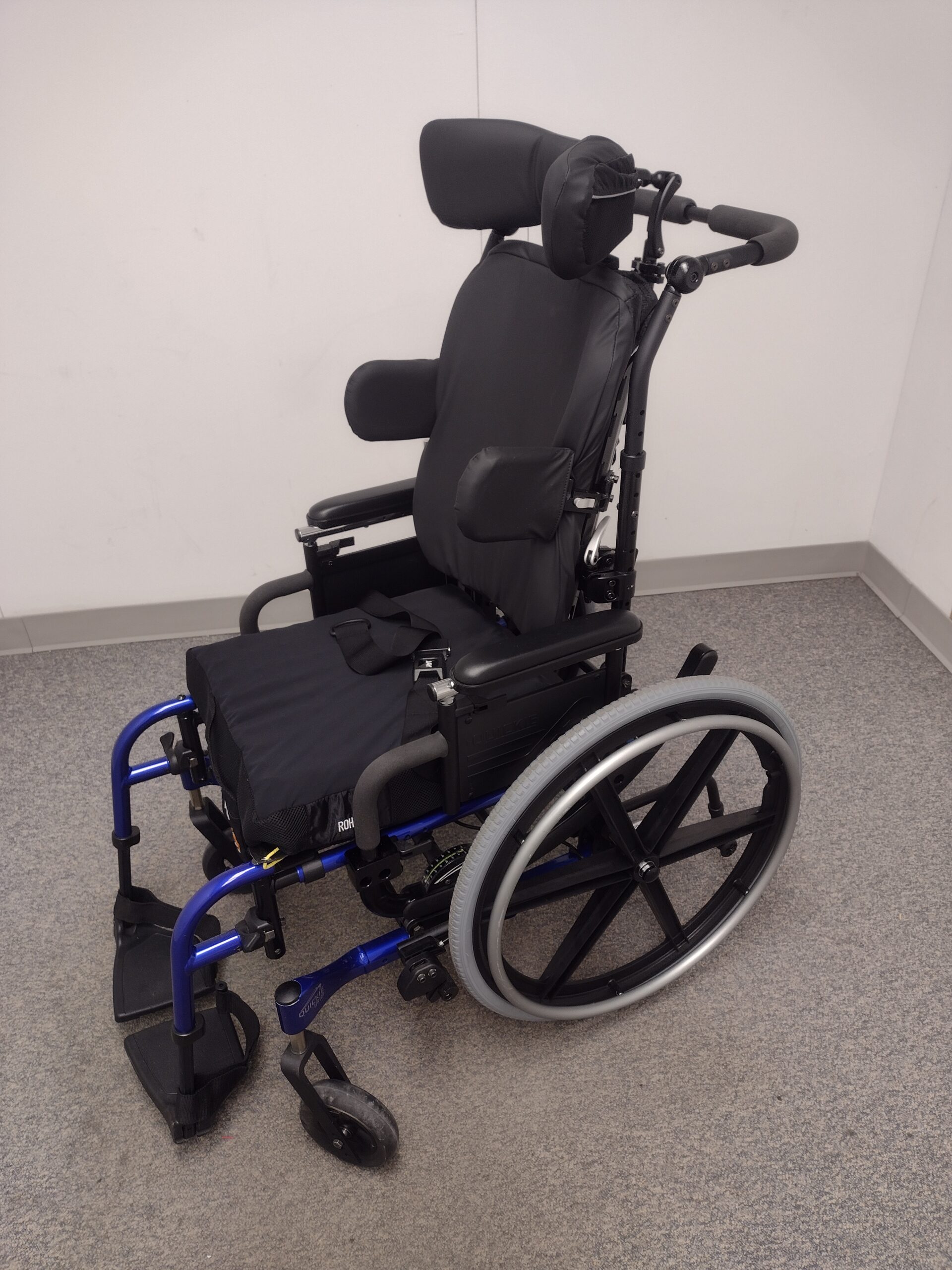 - Seatbelt, Lateral Supports, Headrest, Heel Straps, Manual Tilt, Anti-Tippers, Swing-Back Arm Rests, Swing-Away Leg Rests, Roho Cushion, Back Folds